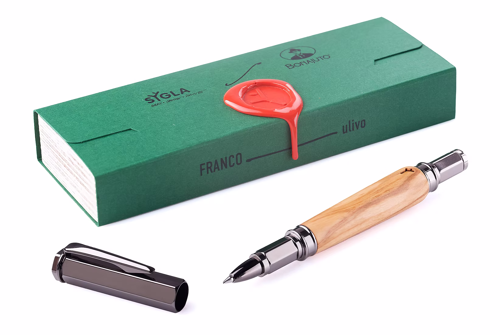 La Penna Franco è “La Visionaria”: un omaggio a un uomo che, partendo da un vicoletto della sua Modica, ha saputo conquistare il mondo con un sogno sensibile e luminoso. Parte della collezione “I Tre Ponti”, questa penna di Sygla incarna una storia che si nutre di tradizione e “sa di cioccolata”. Realizzata artigianalmente a Ragusa da Salvatore Fazzino, la Franco è pensata per chi possiede una visione ampia, capace di trasformare la storia locale in un messaggio universale.
